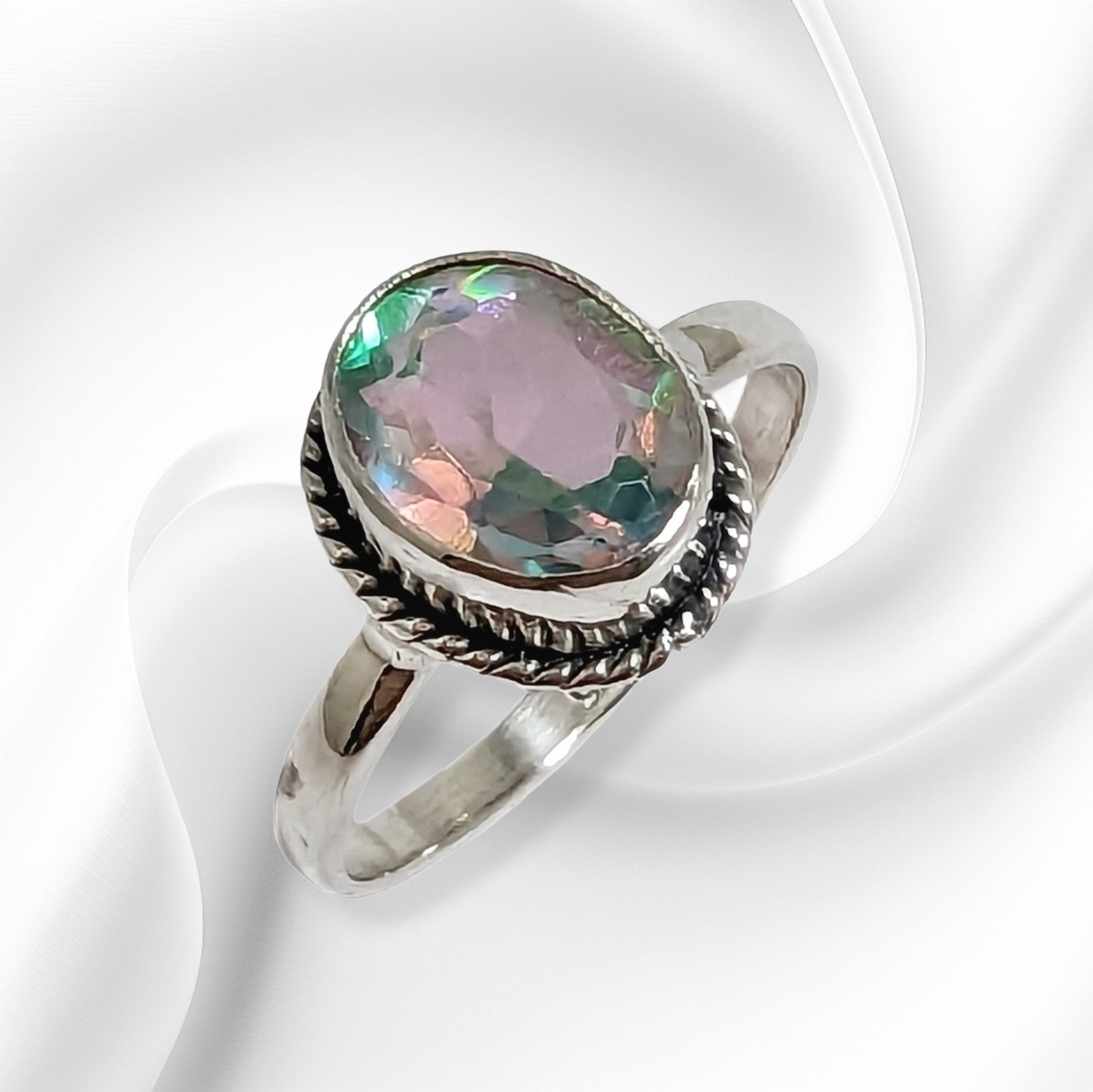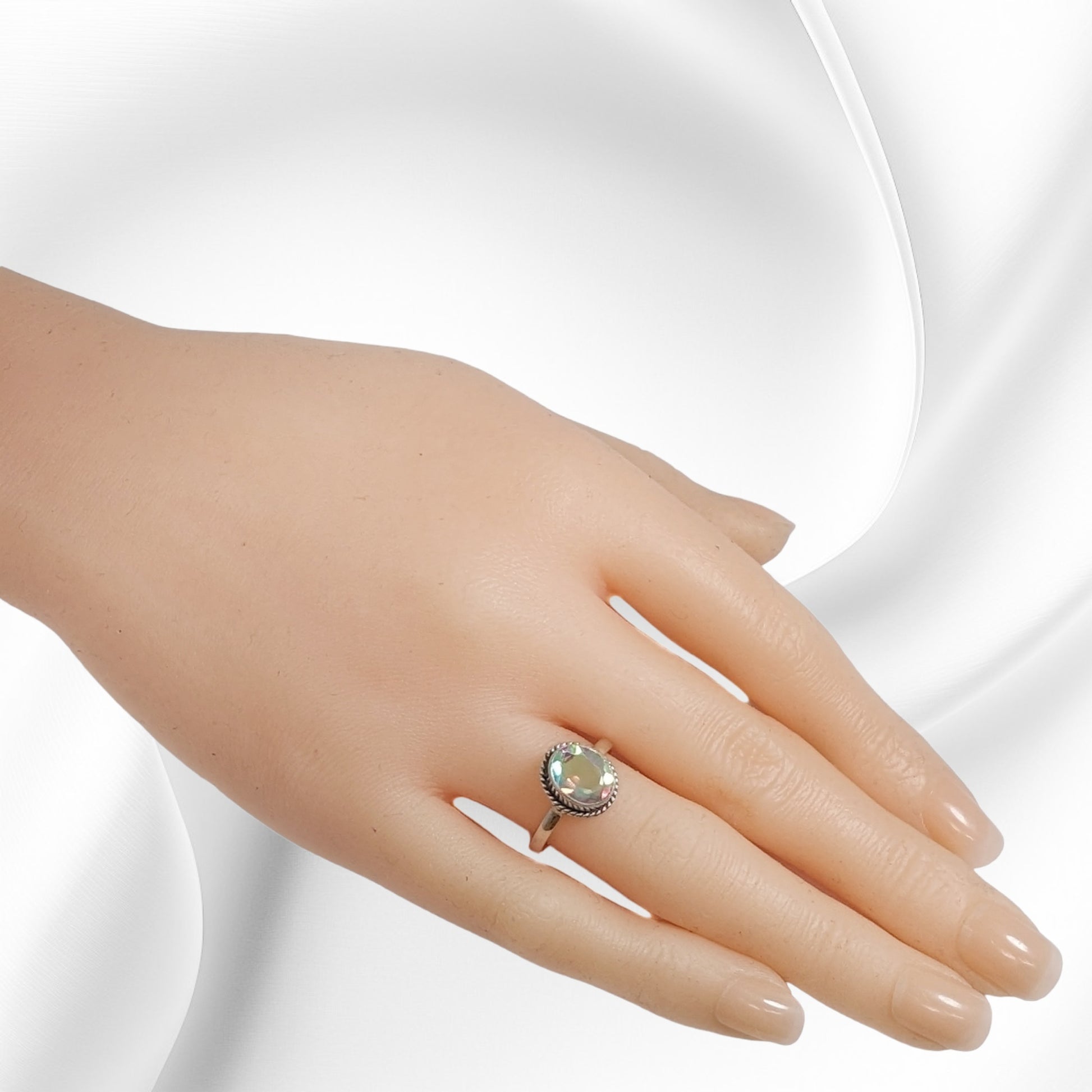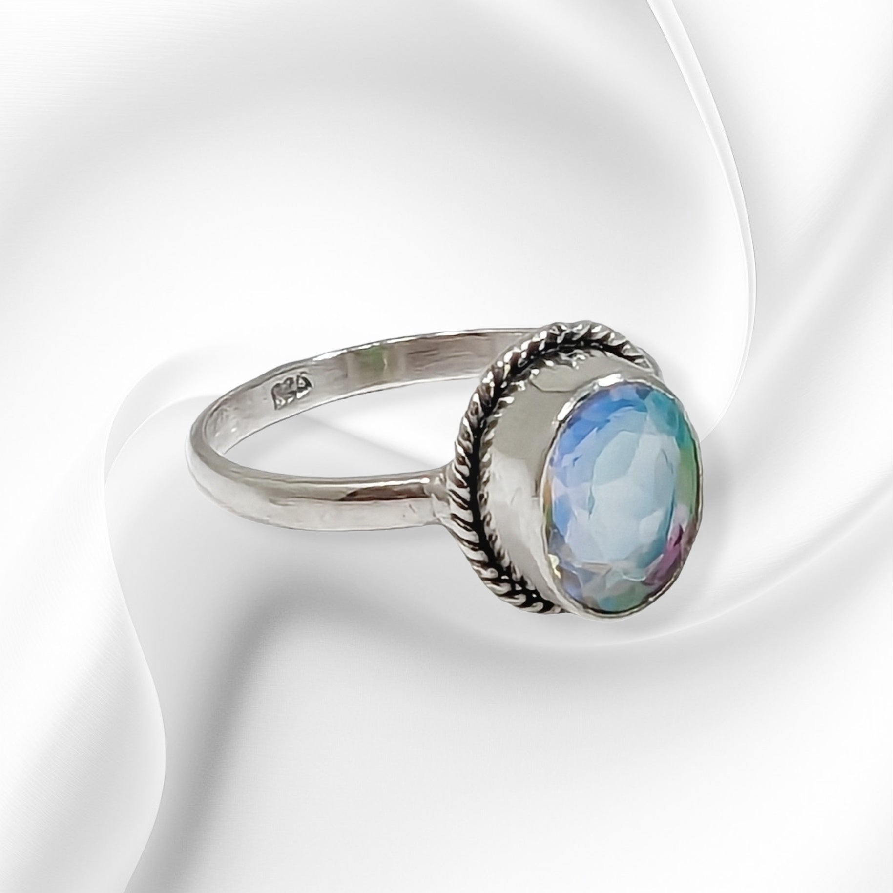 Add a touch of magic to your look with this stunning Woman's Ring crafted from genuine 925 Sterling Silver. The centerpiece of this piece is an authentic oval-cut Mystic Opal, radiating with multicoloured iridescence. The solitaire design is complemented with excellent cut grade and is nickle-free, making it perfect for sensitive skin. The Ring is ideal for anniversaries, birthdays, graduations, valentine's day, mother's day, Christmas or just to add to your personal collection. Hallmarked 925, this handmade Ring is a Sterling Silver treasure for any woman's collection.