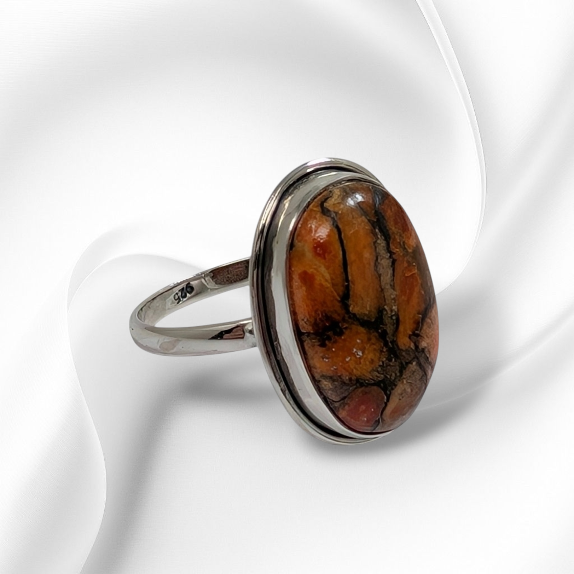 925 Sterling Silver Women's Ring with Authentic Red Copper Turquoise Gemstone