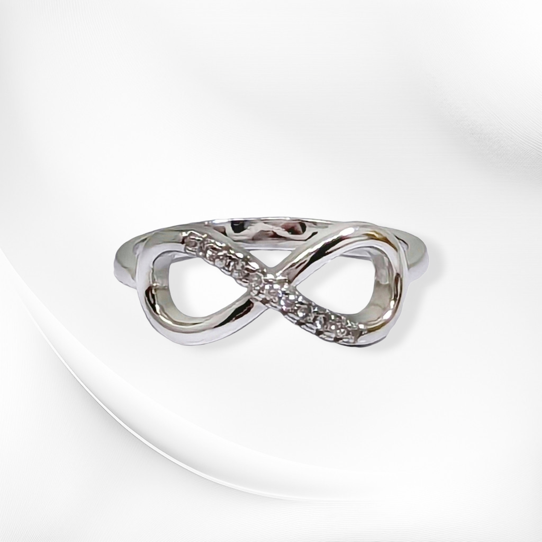 This solid 925 Sterling Silver Women's Ring features a Infinity design with Cubic Zirconia Crystals. It is perfect for various occasions such as engagements, anniversaries, birthdays and Valentine's Day. The Ring is hallmarked 925, is nickel-free and made of high-quality materials, ensuring a durable and beautiful piece of jewellery. The Sterling Silver metal and clear Cubic Zirconia Crystals add a touch of elegance and sophistication, making it a timeless and classic addition to any jewellery collection.