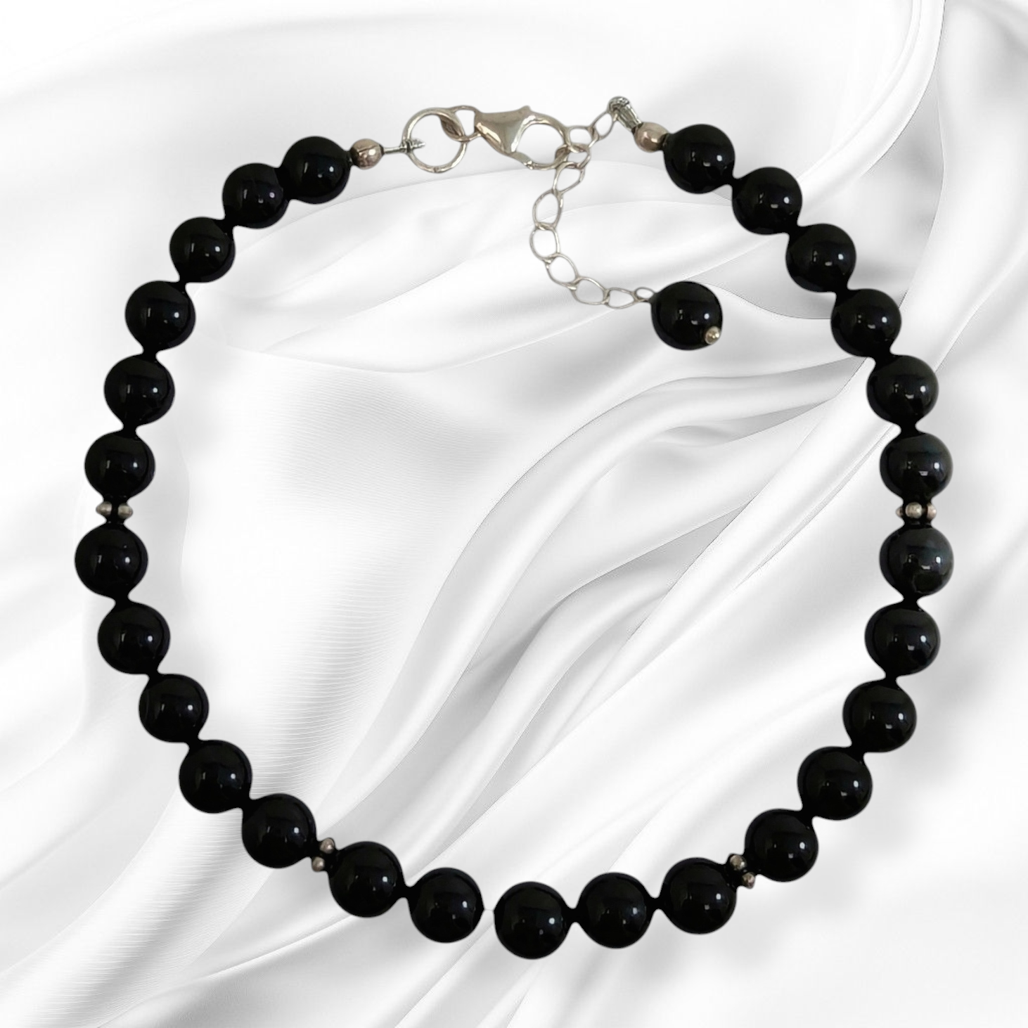 Authentic Black Onyx Gemstones with 925 Sterling Silver Women's Beads Bracelet