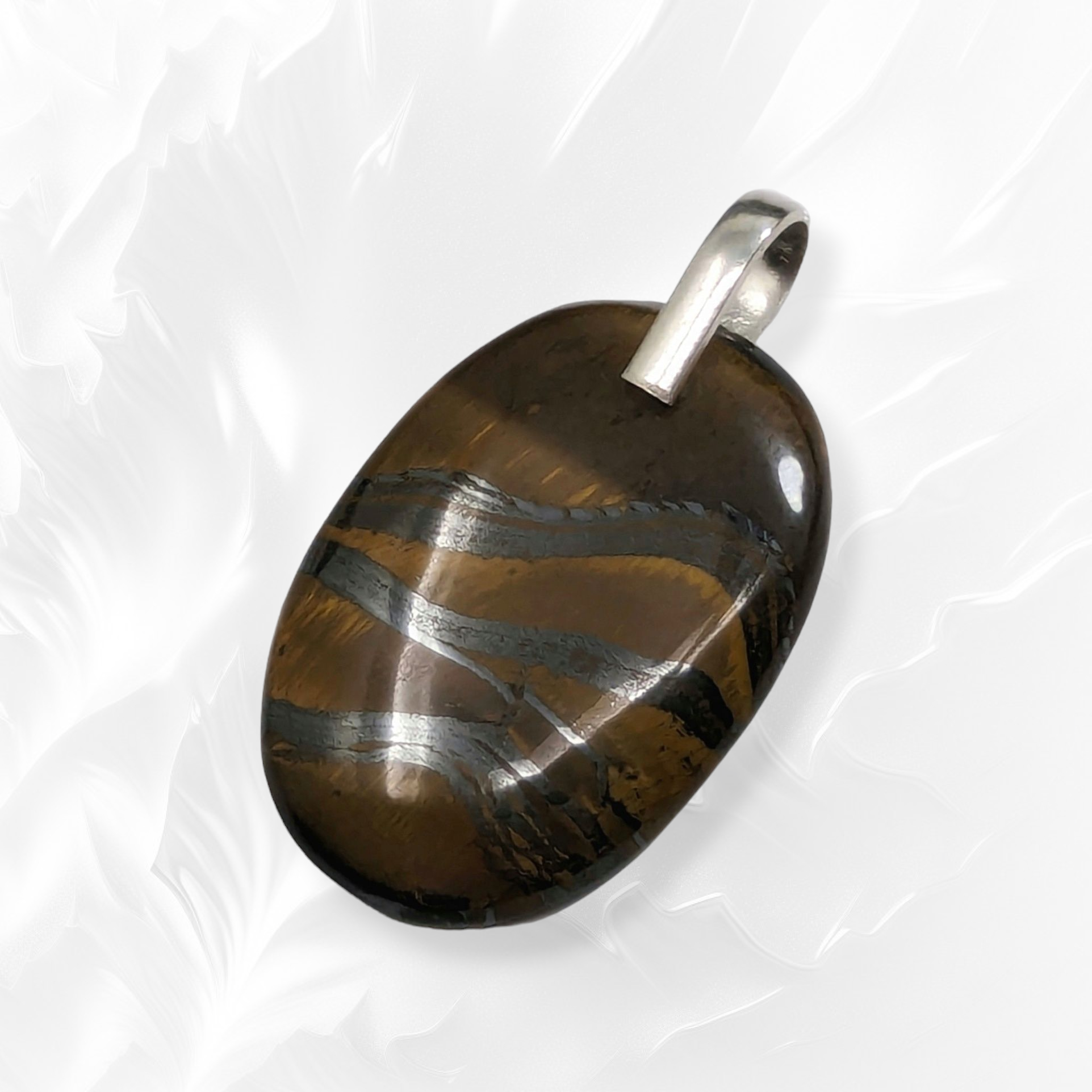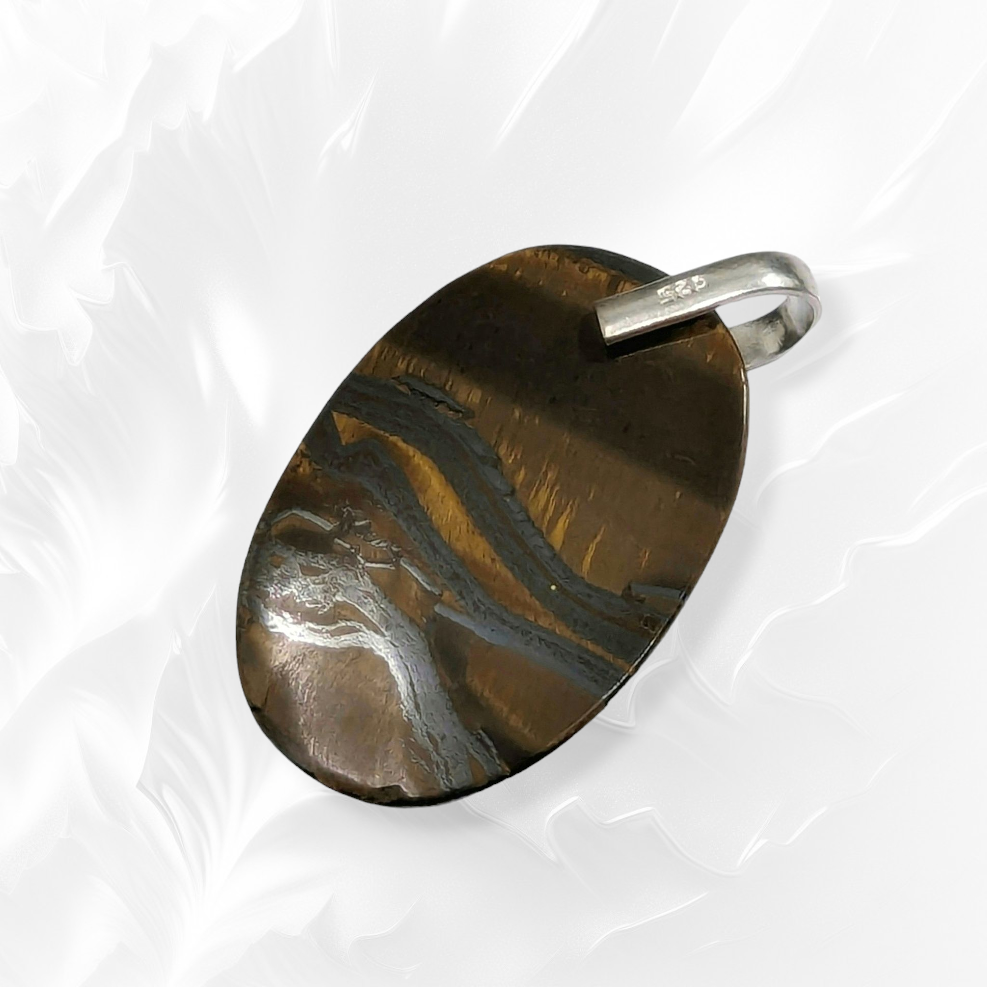 Authentic Tigers Eye Gemstone and 925 Sterling Silver Women's Pendant