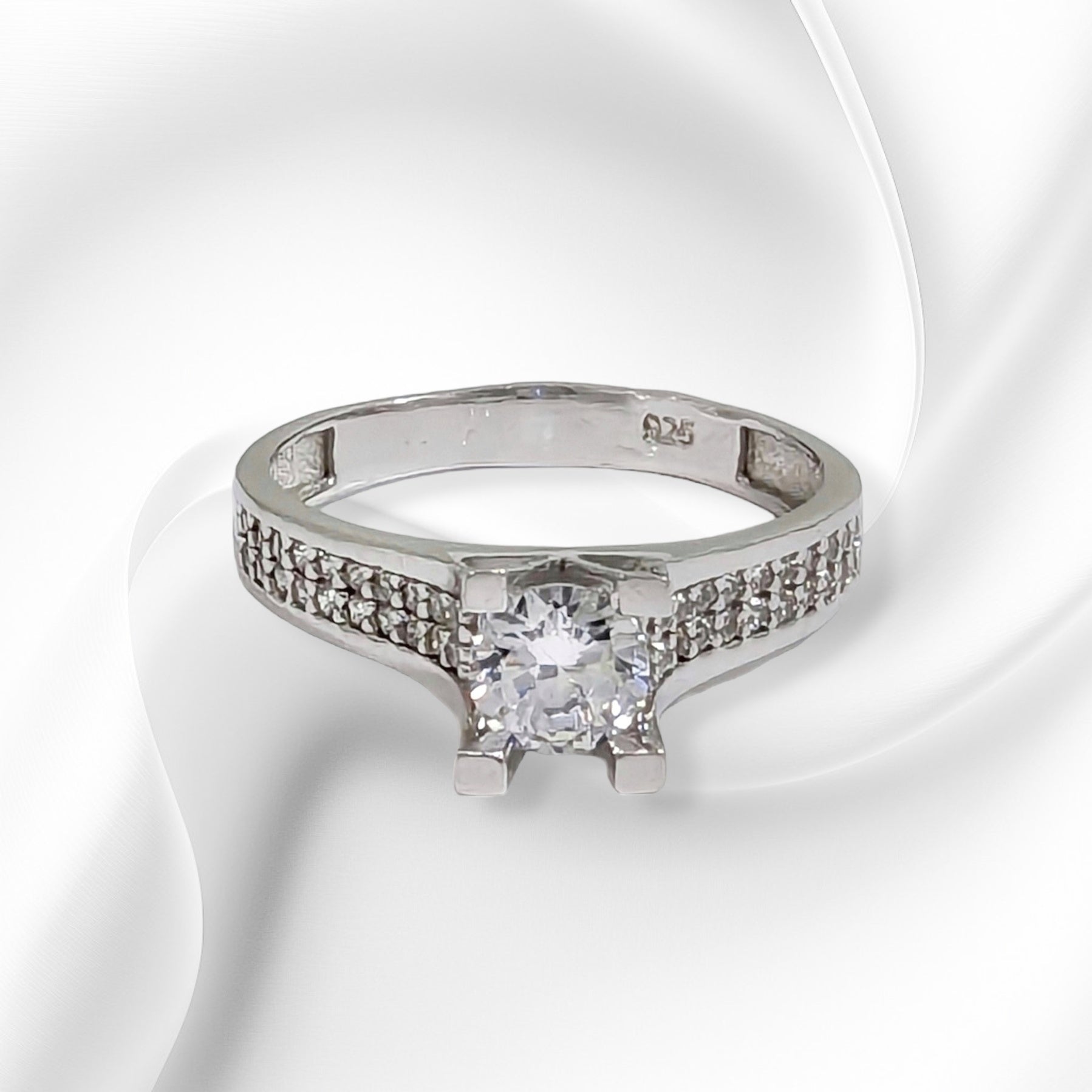 Genuine 925 Sterling Silver Solitaire Women's Ring with Cubic Zirconia Crystals