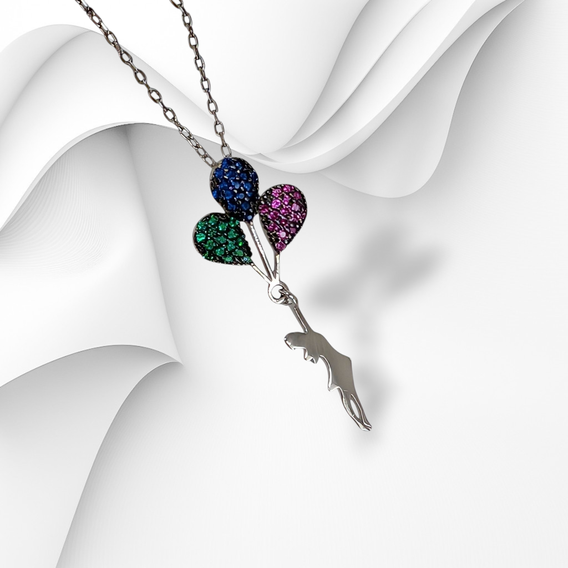 Genuine 925 Sterling Silver Women Necklace With Cubic Zirconia Crystals *Girl with Balloons Necklace