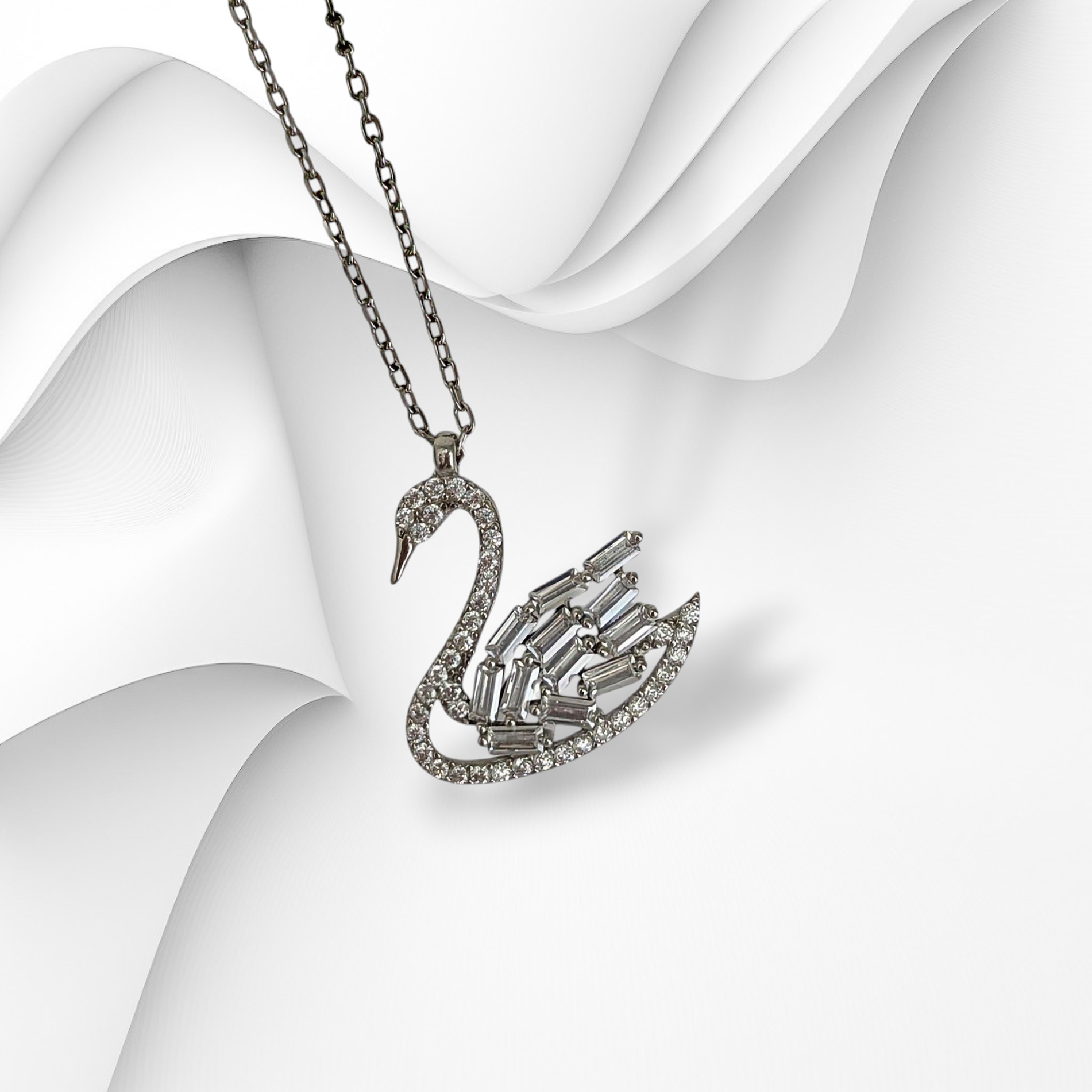 Genuine 925 Sterling Silver Women Necklace With Cubic Zirconia Crystals *Swan Necklace