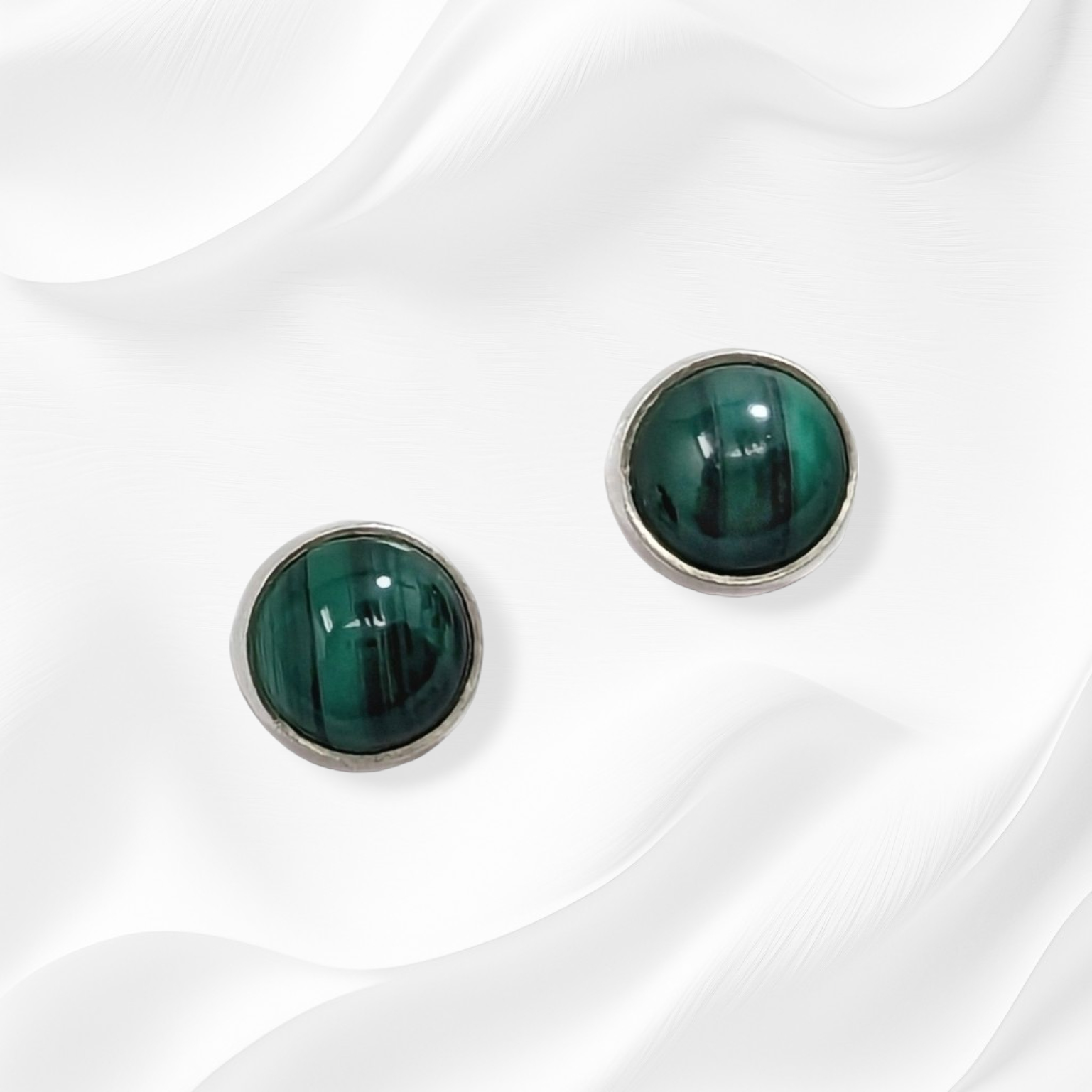 925 Sterling Silver Stud Earrings With Authentic Malachite Gemstones